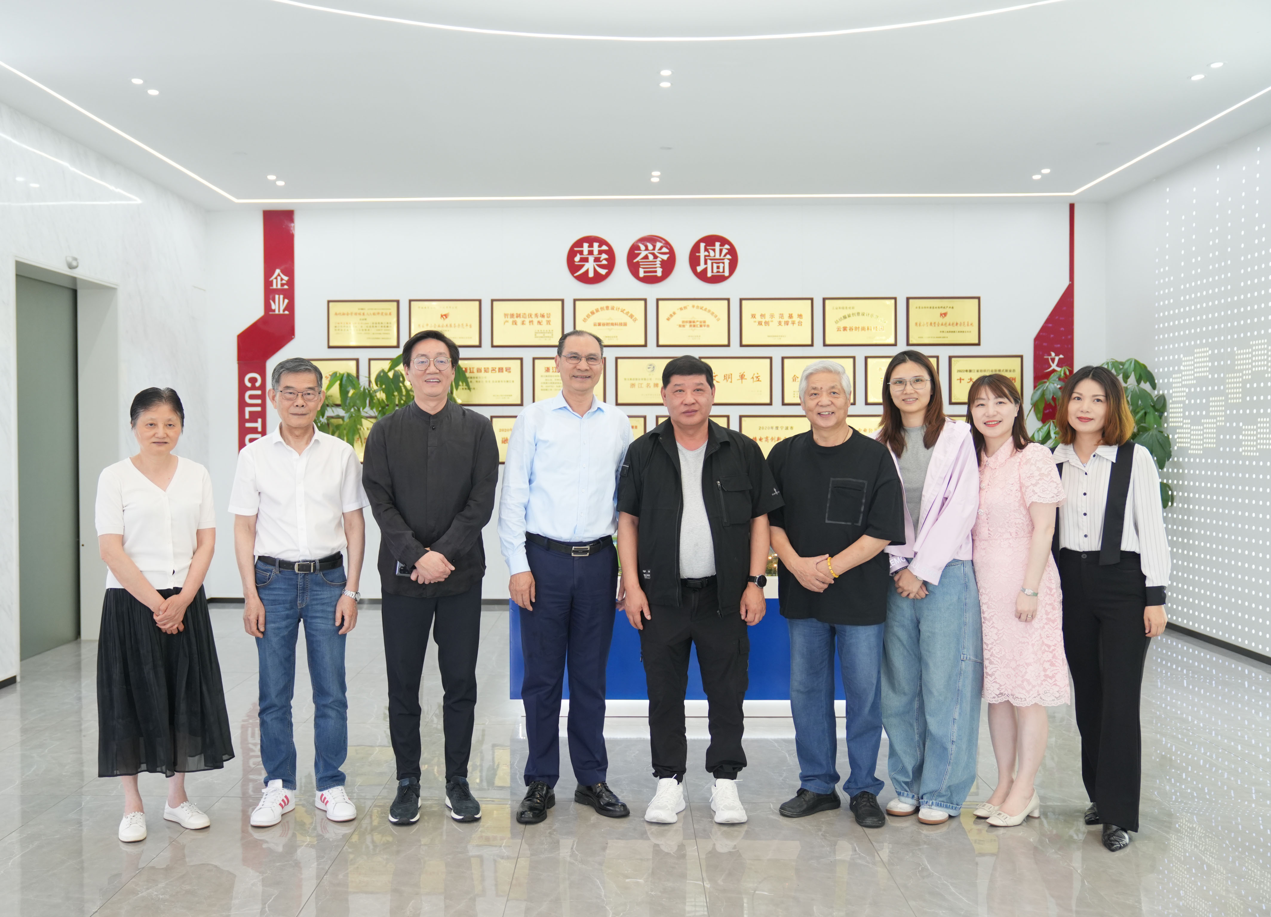 On the afternoon of June 5th, a delegation led by Feng Dehu, President of the Zhejiang Garment Industry Association; Han Licheng, Advisor; Shen Moli, Secretary-General; and Zheng Nianhua, Chairman of Hangzhou Yishang Town Operation and Development Co., Ltd., visited FIOCCO · YESGO Valley for inspection and research. They were accompanied by Chen Guoqiang, Advisor of the China National Garment Association, and Mao Yihua, Vice President and Secretary-General of the Ningbo Garment Association. Shi Yun, Chairman of FIOCCO Group, and Shi Mei, Director and President of the Group, warmly received the delegation.